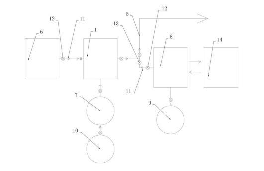 本發(fā)明的一種基于微納米氣泡的井口注氣裝置在使用時,微納米氣泡在油層流動過程中,可以改變油水界面張力,降低原油的粘度,增大油藏的滲透率,從而提高油水的相對滲透率,進而提高原油的采收率;而加藥泵能夠?qū)ψ⑺⑷胨幰?,從而改善注水井管道、油氣田狀況,提高采油率;同時第二旋風(fēng)分離器能夠?qū)⒊叽巛^大的微納米氣泡分離出去,從而保證注入井下的微納米氣泡的尺寸,進而確保驅(qū)油效果,提升采油率。
