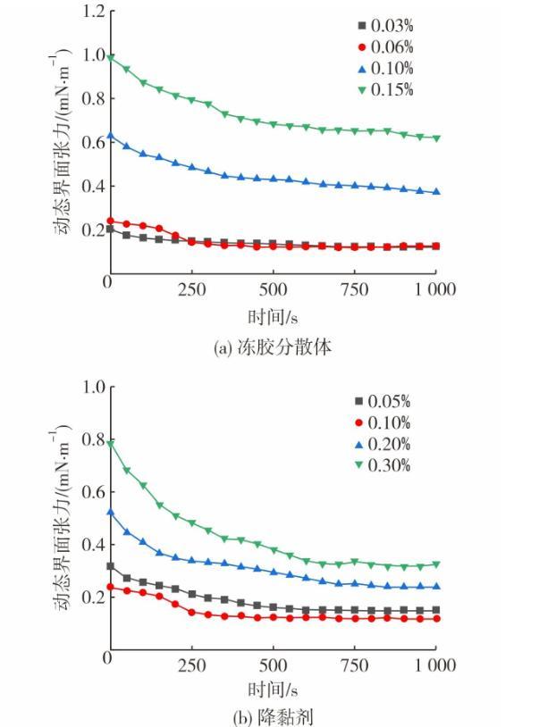 稠油冷降黏劑&采凍膠分散體調驅復配體系對其動態界面張力的影響