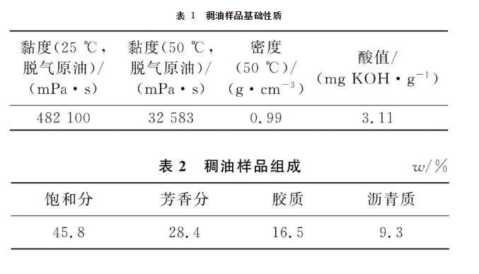 表1稠油樣品基礎性質