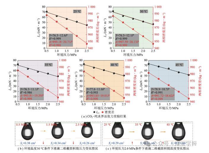 采空區CO2封存作為解決煤炭行業碳排放難題的重要負碳技術儲備,在采空區廢棄資源二次利用、CO2封存等方面具有廣泛的應用前景。利用原位界面張力測定儀開展了不同溫壓、地層水礦化度及陽離子溶液類型對CO2地層水系統的界面張力(IFT)影響規律實驗,明晰了CO2注入含水碎脹煤巖體中的氣液界面擴散效應,并將基于統計締合理論結合蘭納?瓊斯勢能模型的狀態方程(SAFT-LJ狀態方程)與密度梯度理論(DGT)結合預測了IFT理論值;利用自主研發的地質封存地化反應模擬實驗平臺對相同條件下的CO2溶解性進行了探究實驗,得到了采空區儲層環境下CO2溶解度變化特征,采用D-S模型計算了對應CO2溶解度理論值。
