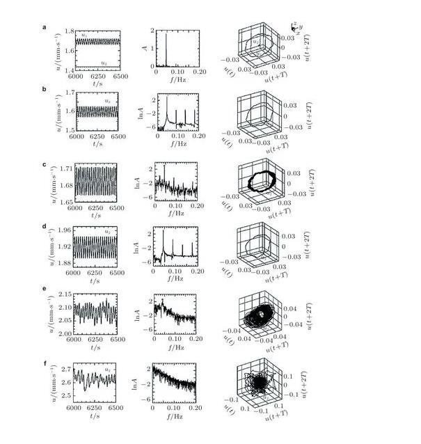 (2)目前關(guān)于液層界面張力梯度驅(qū)動對流向湍流的超臨界轉(zhuǎn)捩在數(shù)值方法上主要有流動時序數(shù)據(jù)的分析和分岔問題的數(shù)值算法。流動宏觀量的時序數(shù)據(jù)來自實驗結(jié)果或者直接數(shù)值模擬,對于后者,需要對于不同參數(shù)分別進行數(shù)值模擬,再通過時間序列頻譜及其混沌特性的定量計算分析流動轉(zhuǎn)捩規(guī)律,即在大量的離散的數(shù)據(jù)序列中尋找分岔點,故此過程比較繁瑣。而通過構(gòu)造分岔方程對分岔進行數(shù)值計算的方法雖然可以一步到位,但是在選取分岔方程,解高維線性、非線性方程等過程中均需要根據(jù)具體的流動模型進行調(diào)整,具有一定難度,且對于更加復雜的流動模式需要更大的計算量,用此算法也無法直接計算得到混沌解。上述兩種方法各有優(yōu)缺點,目前在轉(zhuǎn)捩過程的數(shù)值研究中較為常用的仍是在不同參數(shù)下進行直接數(shù)值模擬,而后對大量數(shù)據(jù)進行頻譜分析,識別分岔點;在直接對分岔進行數(shù)值計算的研究中,也常常需要通過直接數(shù)值模擬來驗證分岔得到的解的可靠性與準確性,在今后的研究中可考慮進一步將兩種方法結(jié)合運用,互相補充、驗證。