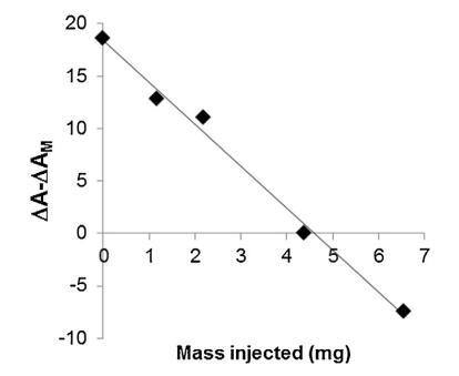 圖 6. 相對面積隨注射脂質體質量的變化 進入亞相。 線性回歸是通過 R2 為 0.992 獲得的。