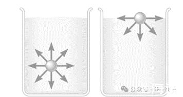 上圖左邊表示的是液體內(nèi)部的水分子,受到周邊水分子各個(gè)方向均勻的吸引力,合力為零;右邊表示處于表面的水分子,受到下方水分子的吸引力,上方無水分子不存在吸引力,這樣下方水分子合力不為零,方向往液體內(nèi)部。