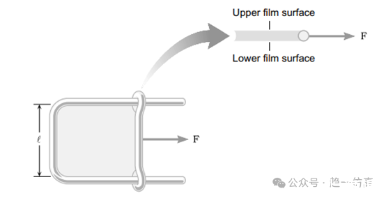 液體的表面張力促使液面收縮,對(duì)滑塊有一個(gè)向左的拉力,當(dāng)我們用一個(gè)向右的力與之平衡時(shí),可以獲得力的大小,然后與滑塊的長度一起可以算出表面張力系數(shù)。