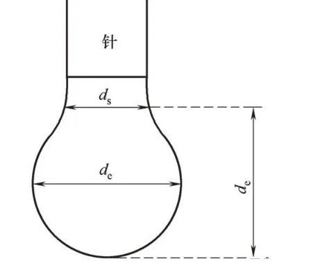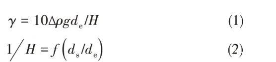 式中,γ為界面張力,mN/m;,Δρ為兩相密度差,kg/m3;g為重力加速度,g=9.80 m/s2;de為懸滴最大直徑,m。油滴尺寸如圖1標注,ds為距油滴頂點垂直距離為de處油滴截面直徑,m。1H可由Andreas等建立的函數表得到。