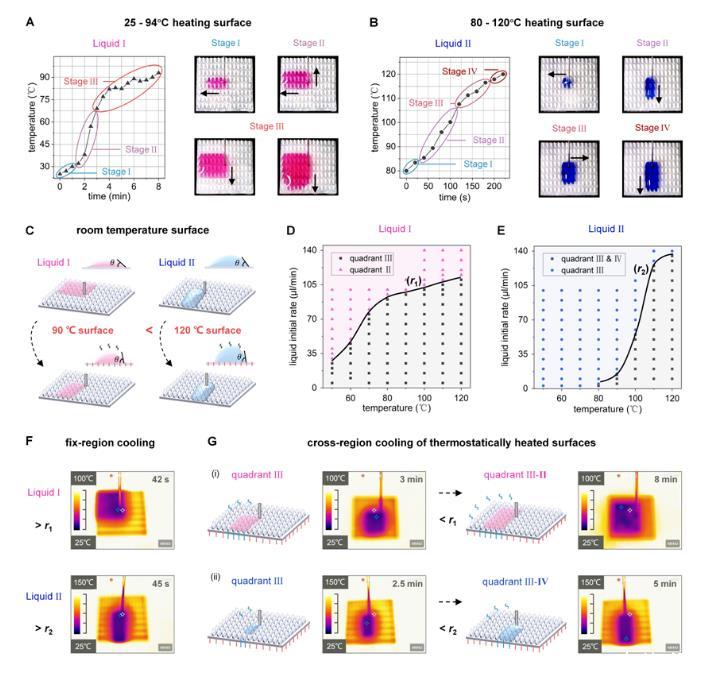 圖4:高溫表面上的動(dòng)態(tài)液體運(yùn)輸控制和時(shí)空可控的靶向冷卻。