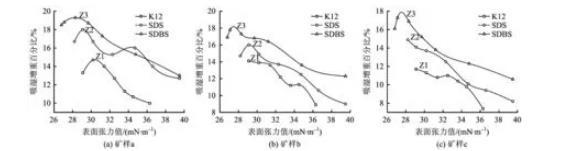 > 仲醇聚氧乙烯醚硫酸鹽平衡和動態表面張力及應用性能研究(三)
