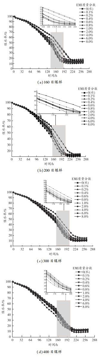 圖9不同質量分數EMI溶液中煤樣保水率變化曲線