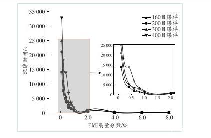 圖7煤塵沉降時間與EMI質量分數的關系