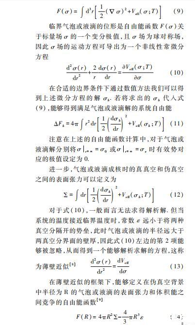 在上述對氣泡動力學研究的理論分析中,標量場σ的真空平均值可以看做序參數(shù),并且系統(tǒng)的自由能函數(shù)能夠被定義為