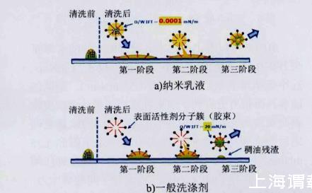 圖1納米乳液和常規(guī)表面活性劑除油機(jī)理對比