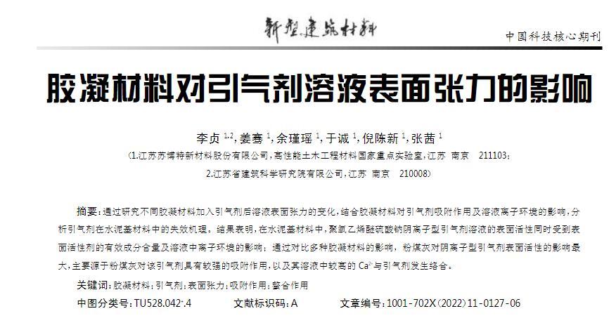 本文研究了混凝土中常用的膠凝材料組分(水泥、粉煤灰、礦粉、硅灰)對(duì)引氣劑引氣作用失效的影響機(jī)制,根據(jù)溶液表面張力的變化評(píng)價(jià)引氣劑在不同膠凝材料水泥基材料中的起泡性能。