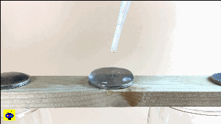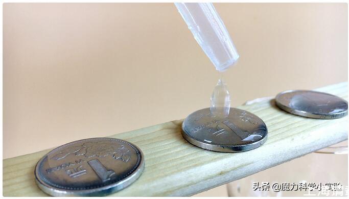 正是由于這個力,硬幣上的水滴能夠凸起來,在極限值到來之前,液滴都不會倒塌。