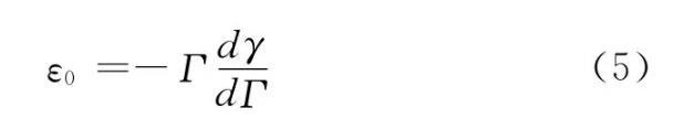 擴(kuò)張彈性全頻率譜上高頻平臺(tái)值稱為極限擴(kuò)張彈性(ε0),其物理化學(xué)意義是當(dāng)頻率足夠大、所有界面弛豫過程均可忽略時(shí)的擴(kuò)張彈性,如式(5)所示。