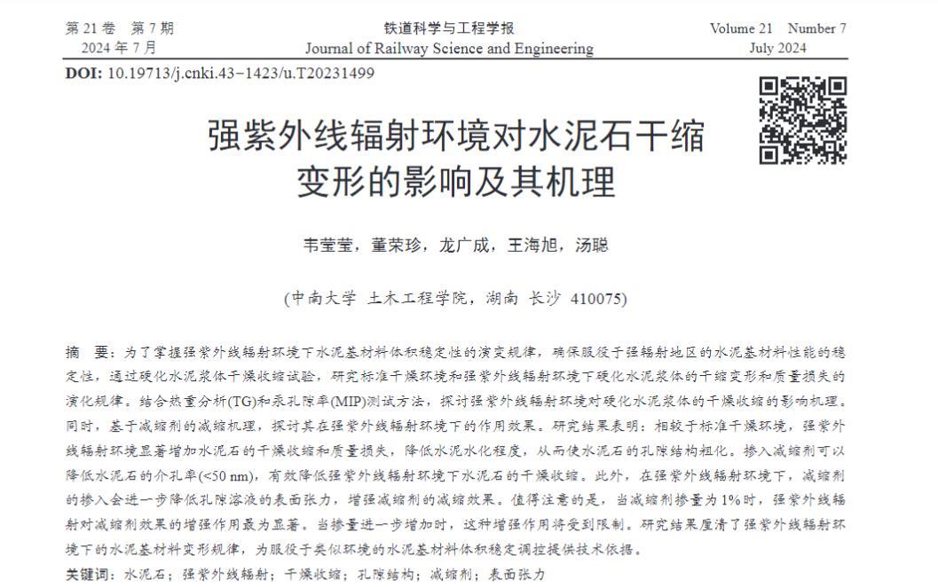 當(dāng)摻量進(jìn)一步增加時(shí),這種增強(qiáng)作用將受到限制。研究結(jié)果厘清了強(qiáng)紫外線輻射環(huán)境下的水泥基材料變形規(guī)律,為服役于類似環(huán)境的水泥基材料體積穩(wěn)定調(diào)控提供技術(shù)依據(jù)。
