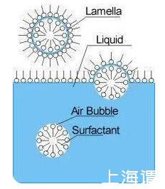 說了這么多,表面張力和泡泡到底有什么關(guān)系呢?純水的表面張力比較大,不能形成穩(wěn)定的泡泡,因?yàn)榕菖莸漠a(chǎn)生會(huì)增大氣液間的表面積,使得表面自由能增大,這是熱力學(xué)不穩(wěn)定的。加入表面活性劑后,表面活性劑的親水基團(tuán)插入水相,疏水基團(tuán)豎在空氣中,這樣降低了表面張力,讓泡泡能穩(wěn)定存在一段時(shí)間。從下面這張圖中可以看出,泡泡膜是三明治結(jié)構(gòu),兩側(cè)是表面活性劑,中間夾著一層水,這一三明治結(jié)構(gòu)對(duì)后面泡泡水的配方至關(guān)重要。