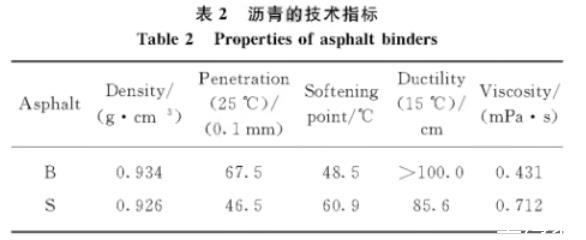 純度1)99.5%的無水乙醇(分析純);70#基質(zhì)瀝青(B);SBS改性瀝青(S);5種表面活性劑:阿科瑪Cecabase 945(W1)、阿科瑪Cecabase Bio 10(W2)、諾力昂Rediset LQ-1102C(W3)、上海龍孚LYE-WMA(W4)、美德維實(shí)偉克M-1(W5),表面活性劑W1——W5摻量分別為瀝青質(zhì)量的0.4%、0.4%、0.6%、0.6%、0.6%.瀝青的技術(shù)指標(biāo)見表2,其中:黏度采用布式旋轉(zhuǎn)黏度法測試,取剪切速率為25s-1時的黏度值;基質(zhì)瀝青、SBS改性瀝青的密度與黏度的測試溫度分別為135、165℃。