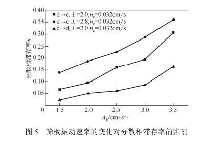 圖5篩板振動速率的變化對分散相滯存率的影響