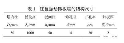 表1往復振動篩板塔的結構尺寸