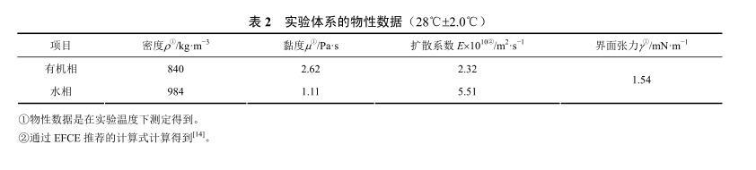 表2實驗體系的物性數據(28℃±2.0℃)