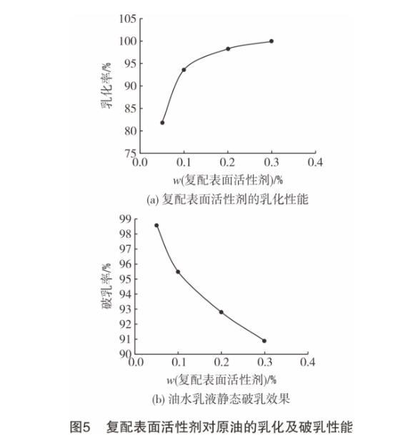 2.5復配表面活性劑對原油的乳化及破乳性能
