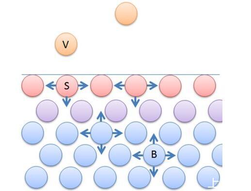 紅色為表面分子,下面為內(nèi)部水分子