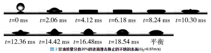 圖2甘油質量分數20%的液滴撞擊靜止的不銹鋼表面(UD=0.97m/s)