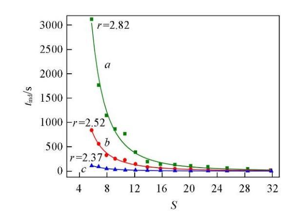 成核誘導期與過飽和度的半經(jīng)驗關系式[33]如下:
