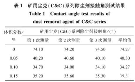 表1礦用塵克(C&C)系列除塵劑接觸角測試結(jié)果