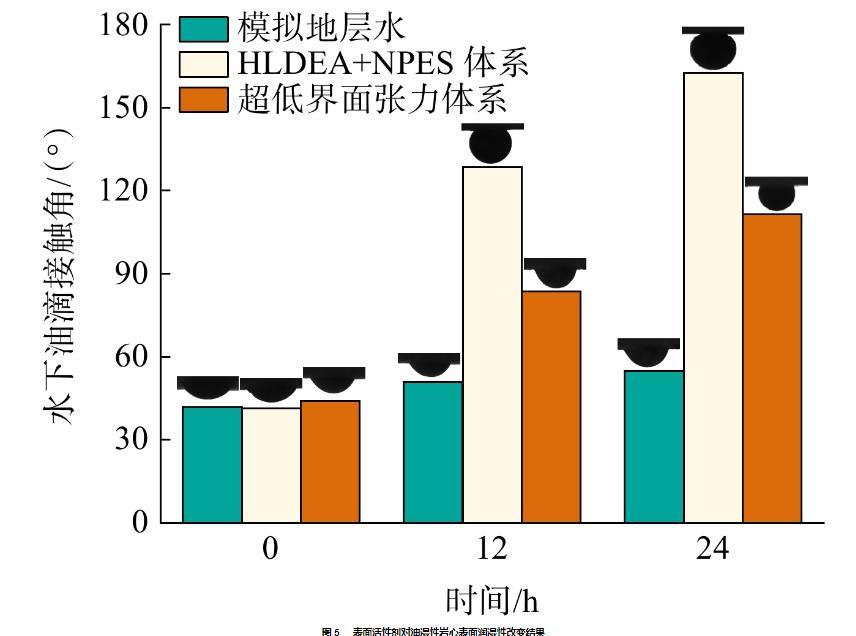 圖5表面活性劑對油濕性巖心表面潤濕性改變結(jié)果
