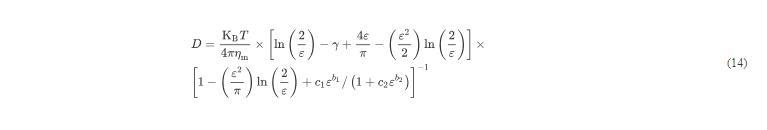 均為常數(shù),取自文獻。肺表面活性劑單層膜厚度為1 nm,由此可得膜的體黏度為0.77 Pa·s,是純水黏度的770倍。圖9(b)將與TC區(qū)域粘連的顆粒的擴散系數(shù)(以圓形表示)與單獨TC區(qū)域的擴散系數(shù)(以虛線表示)進行了對比,后者選取3.5μm為平均TC區(qū)域直徑(參照圖2照片),由HPW模型代入計算得出。可以看出,在實驗統(tǒng)計誤差范圍內(nèi),二者近似相等,表明顆粒與TC區(qū)域形成的整體受力主要來自于TC區(qū)域。TC區(qū)域直徑遠大于顆粒直徑,膜內(nèi)黏滯阻力更大;此外,膜的體黏度遠大于水相,因此水相對顆粒浸沒部分施加的黏滯阻力可忽略不計。