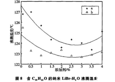 圖8含C10H 22O的納米LiBr-H 2O沸騰溫度