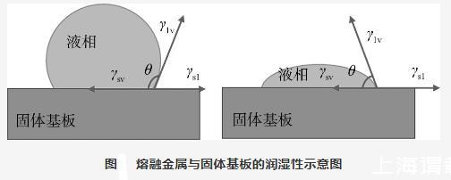 越大,說明液態(tài)金屬對固體基板的潤濕性越差;反之,越好。當(dāng)