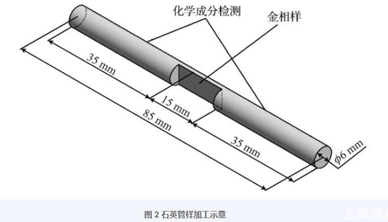 每個(gè)石英管樣長度約為85 mm,直徑約為6 mm,試樣加工如圖2所示。取中間位置制備金相樣;取兩頭中光潔度較好、致密度較高的一頭進(jìn)行表面磨光,車取直徑為4 mm的氧氮?dú)怏w棒;最終余料取屑用于分析鋼中剩余主要元素的質(zhì)量分?jǐn)?shù)。金相樣經(jīng)過線切割、精細(xì)磨拋后,用ASPEX掃描電鏡檢測試樣,并對掃描結(jié)果進(jìn)行分析,統(tǒng)計(jì)每個(gè)試樣中氧化物夾雜的數(shù)量密度和平均尺寸。