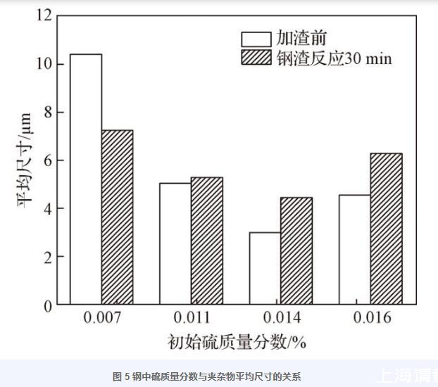 圖5鋼中硫質(zhì)量分?jǐn)?shù)與夾雜物平均尺寸的關(guān)系