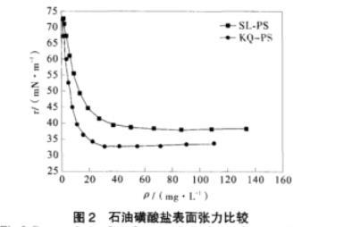 圖2石油磺酸鹽表面張力比較