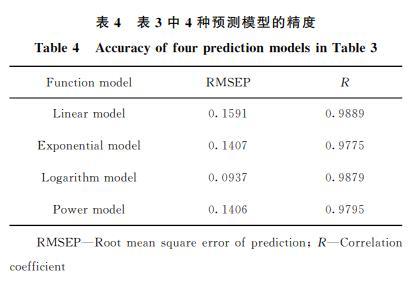 按式(6)、式(7)計算4種模型留一法交叉驗證后的RMSEP和R,結果如表4所示。