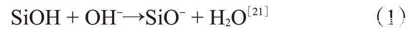 模擬地層水配制的納米SiO2/SDS體系的pH值在8.5左右,此時,納米SiO2表面的羥基會和OH-發生如下反應: