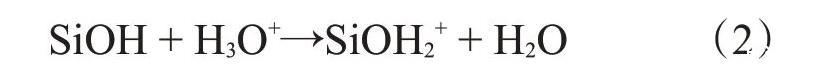 在酸性介質中,納米SiO2表面的羥基會和游離的質子化水發生如下反應:
