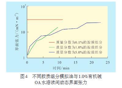 2.4有機堿OA水溶液與膠質組分模擬油間動態界面張力