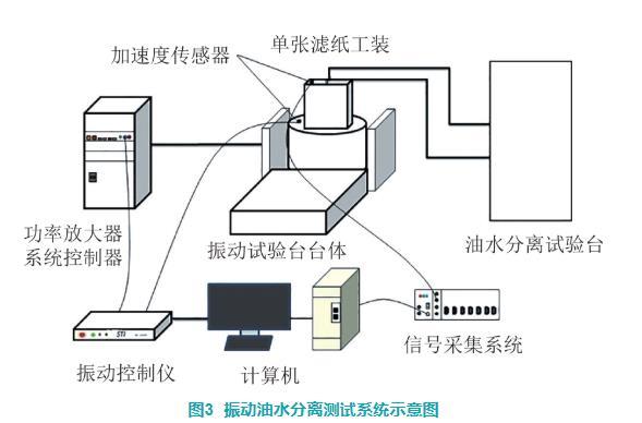 試驗(yàn)的主要設(shè)備有電振動(dòng)試驗(yàn)臺(tái)、按照ISO 16332標(biāo)準(zhǔn)搭建的柴油–水分離試驗(yàn)臺(tái)、加速度傳感器及信號(hào)采集系統(tǒng)、電子天平、庫(kù)倫法微量水測(cè)定儀、界面張力儀、黏度計(jì)等。