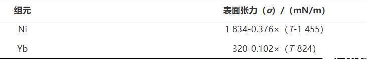 表2純金屬Ni、Yb的標準物理參數(shù)