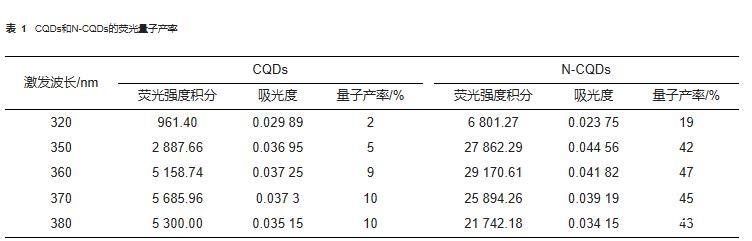 表1 CQDs和N-CQDs的熒光量子產率