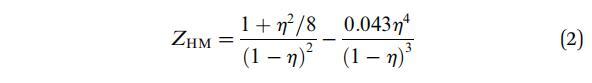 式中,η是表面堆積分數,它可以用顆粒數密度(p)和單個顆粒的體積直徑(d)表示為η=(π/4)pd2。對于我們的實驗,η介于0和0.91之間。ZHM的相應值介于1和96之間。