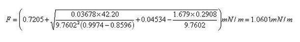 至水面上的油層大約10mm高。然后按和測(cè)水——空氣界面張力的步驟測(cè)水——油的界面張力?,F(xiàn)舉一實(shí)例說明界面張力計(jì)算方法。若顯示器讀數(shù)M為42.20mN/m,被試電子變壓器油25℃的密度ρ1為0.8596g/cm3,鉑環(huán)半徑rr為9.7602mm,鉑絲的半徑rw為0.2980mm,又已知25℃時(shí)純水的密度ρo為0.9974g/cm3,則利用式(1-2)求得
