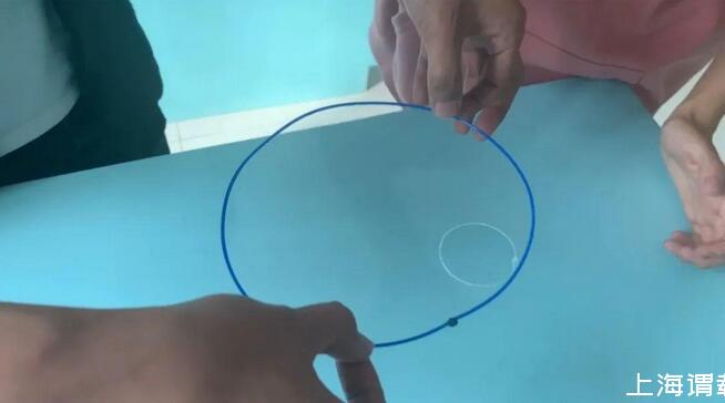 二、棉線打結(jié)成小圈,沾上泡泡水,放在泡泡薄膜上。