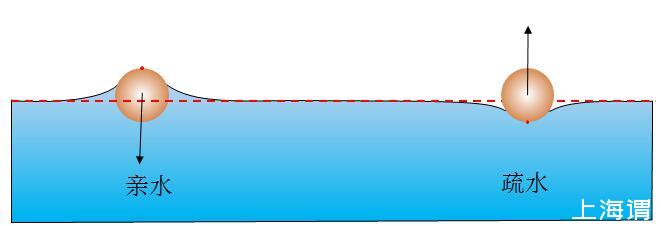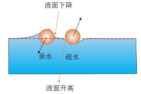 親水的使疏水的固體附近液面沒(méi)那么低,疏水的使親水的物體附近液面沒(méi)那么高,表面為相互排斥。