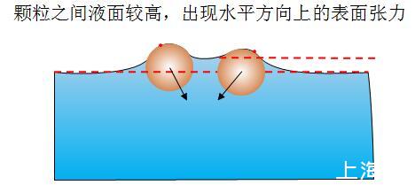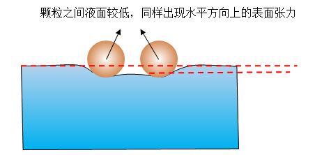 圖7親水疏水顆粒相互使液面變化,打破原來(lái)所受表面張力的對(duì)稱性,出現(xiàn)相互排斥的表面張力