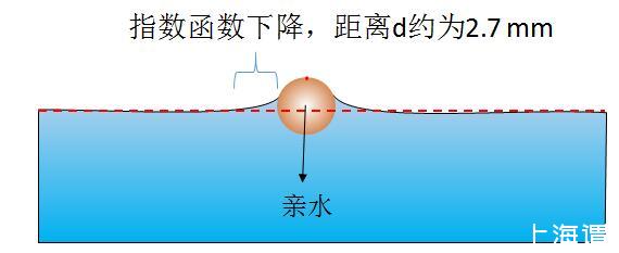 圖1親水物體使周圍水面升高,影響范圍約為2.7mm,此時(shí)液體表面張力垂直向下