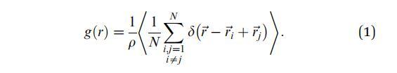 表征單層結(jié)構(gòu)的一個(gè)關(guān)鍵量是徑向分布函數(shù)g(r)。考慮到單層平面中域的均勻分布,g(r)表示在選擇為參考點(diǎn)的另一個(gè)域的距離r處找到域的概率: